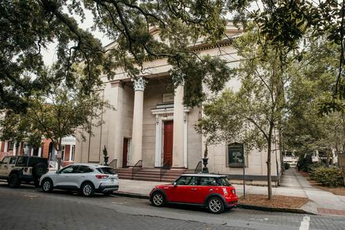 You can enter our building through the big red doors facing Telfair Square or through the side-door entrance on Presidents Street. If you come in via the side door, turn left and walk through our parlor to enter the sanctuary. Or you can turn right to access the bathrooms, at the very end of the hallway.
